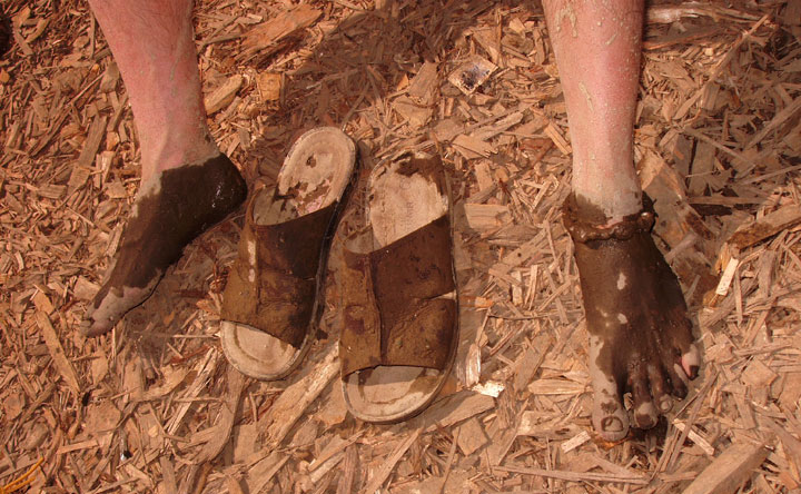 Day two was actually quite fun, in a schadenfreude kind of way. We set up chairs at the entrance and cheered on the immigrants from the Interstate. The sun was shining. It was great to see the exhausted shoe-bums finally get into the last-ever Phish show! I recall the most popular item brought into the festival area were coolers. Beer and food! Mark took his camera and photographed muddy feet and shoes. His photo project was hilarious once he developed the film (most of them are posted here). There was food and fresh water access. We had beer and bud. No one really wanted to talk about the quality of last night’s show, but seeing people arriving from the Interstate was all smiles and cheers.