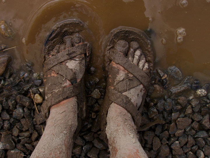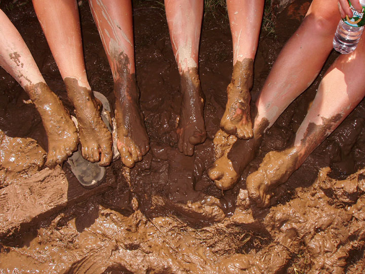 Getting in that night wasn’t as miserable as first night. We tried to get closer, but ended up on the audience-right wall that was officially an open urinal and smelled horrible. There was a river of mud that few dared to go into, but Mark tried. I had a good laugh over it and saw others laughing at his getting stuck in a mire.